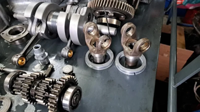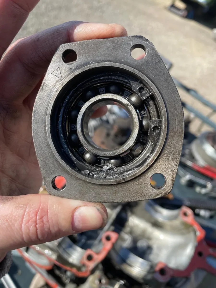 Dus ging mijn Goggo voor een tweede revisie naar Ronny. Hij stelde voor om samen de motor uit elkaar te halen, zodat ik met eigen ogen kon zien wat er mis was. Dat bleek schokkend: verkeerde lagers, slordige montage, oude onderdelen, en zelfs een motorblok met een ander nummer. Of het nummer aangepast was of het hele blok vervangen, zal ik nooit weten.